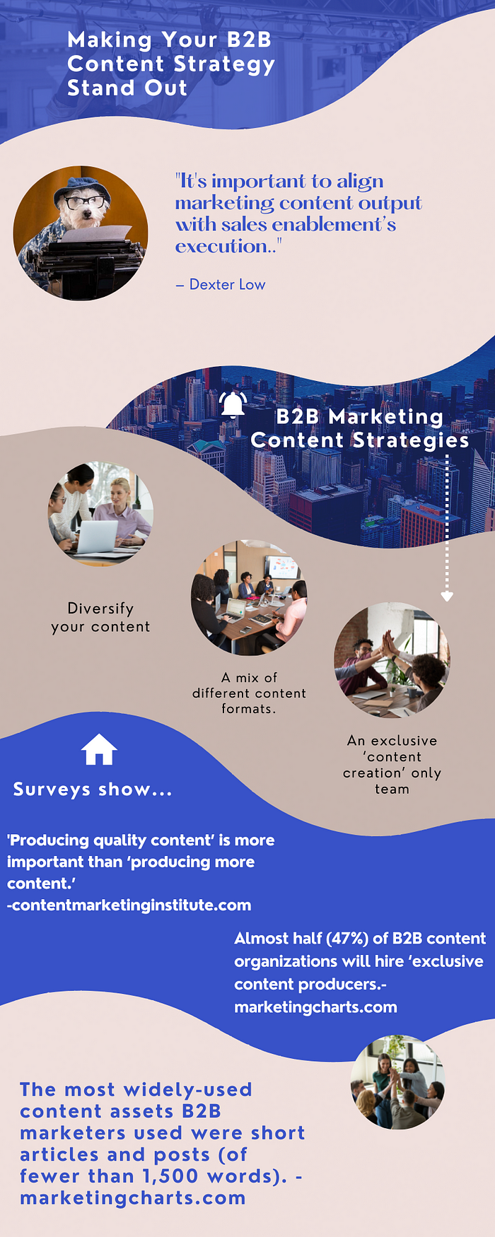 A mix of different content formats, such as blog posts, infographics, videos, and e-books, is essential for appealing to different learning styles and preferences. The most widely-used content assets B2B marketers created in the past year were short articles and posts (of fewer than 1,500 words), as cited by almost 9 in 10 (89% of) respondents.