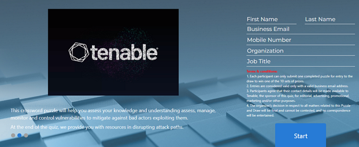 I’m also impressed by the Tenable crossword puzzle gamification campaign. Tenable provides security solutions and research insights to help clients discover their cybersecurity weaknesses. Tenable collaborated with ThinkLogic through its media portal, CybersecAsia, and developed a crossword puzzle to test game participants’ knowledge of ransomware defense management.