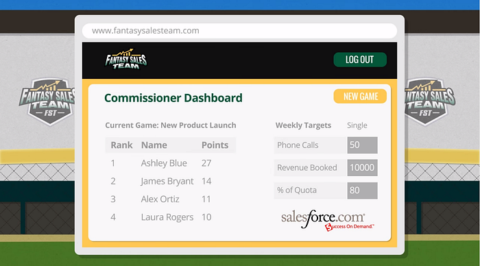 The screenshot below shows Microsoft’s recently acquired sales gamification platform, which they integrate into their customer relationship management (CRM) Microsoft Dynamics. The FantasySalesTeam’s gamification platform has a leaderboard that shows each user’s ranking and points earned. The goal is to motivate and incentivize sales teams to do their best to achieve better results.