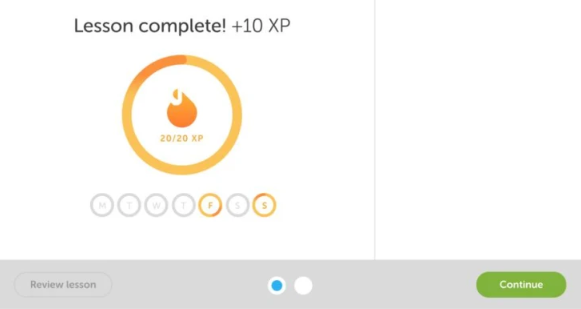 In the example below, a language-learning tool applies gaming concepts to language courses. Duolingo’s gamification allows users to start learning a language with basic sentence constructions. The screenshots below show two gaming concepts: the progress bar and the points system.