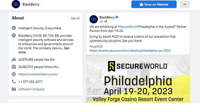 Check out how BlackBerry, an intelligent security software provider, leverages social media to boost B2B demand generation marketing in the screenshot below.