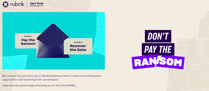 Check out how ThinkLogic Media Group promoted the Rubrik Zero Trust Party Security, ‘Don’t Pay the Ransom,’ in a gamification quiz.